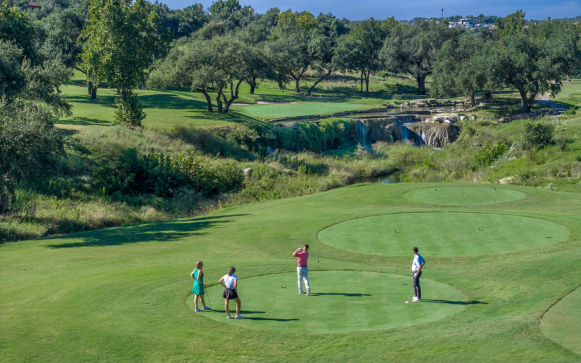 The Hills Country Club offers four prestigious golf courses, including our Nicklaus-designed Flintrock Falls Course and premier-level Signature Course. Combined, these spectacular Austin golf courses deliver some of the finest championship golf in Texas. With courses that are challenging and enjoyable for players of all skill levels, your guests will be treated to truly unique and memorable golf experiences at The Hills Country Club.